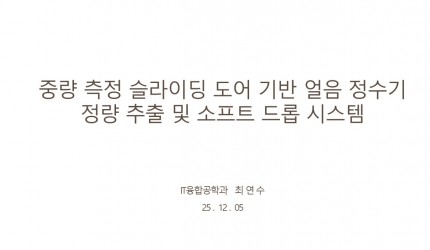 중량 측정 슬라이딩 도어 기반 얼음 정수기 정량 추출 및 소프트 드롭 시스템 (IT융합 종합설계 IV - '18학번 최연수)